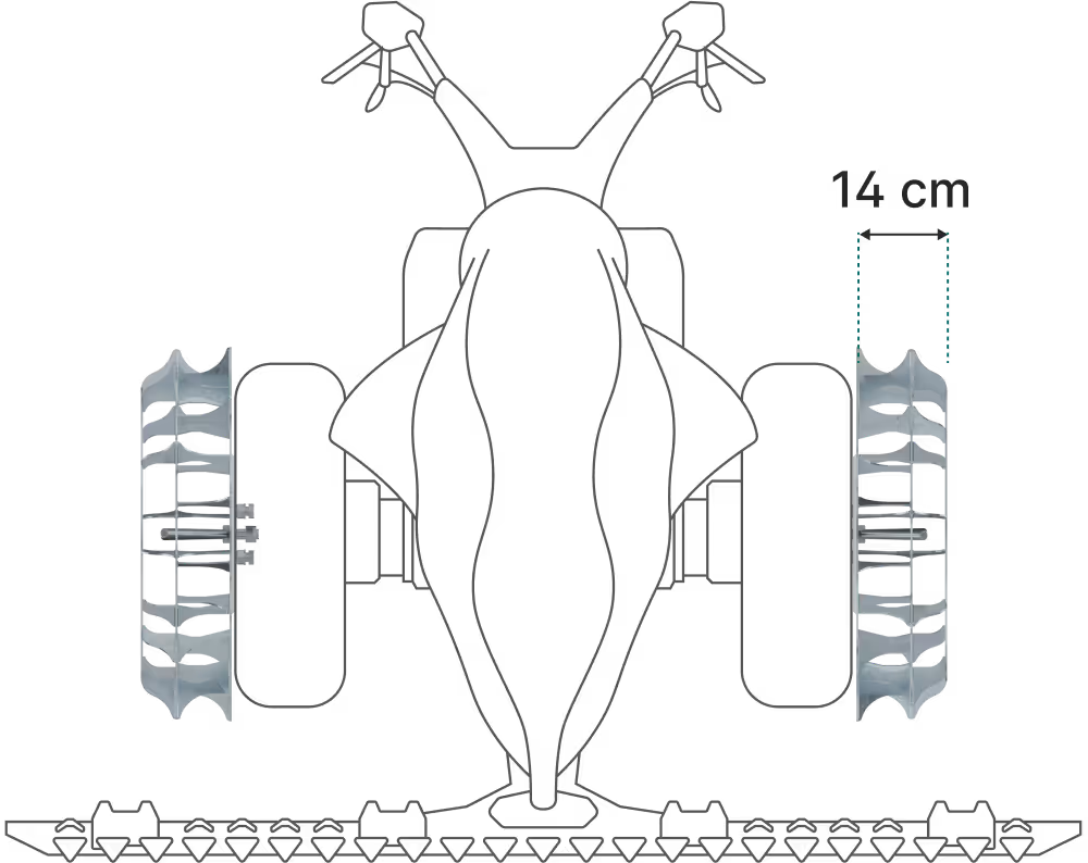 Razdalja med kolesoma, kolotek, se v povprečju pri kosilnici poveča za 44% in na ta način povečamo stabilnost kosilnice.