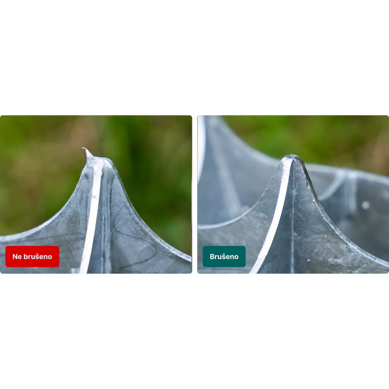 Inovativno oblikovane špice so po varjenju in cinkanju brušene do gladkega, kar zagotavlja, da se na kolesa trava za 82% manj navija in omogoča nemoteno delo tudi na travnikih z visoko in gosto travo.