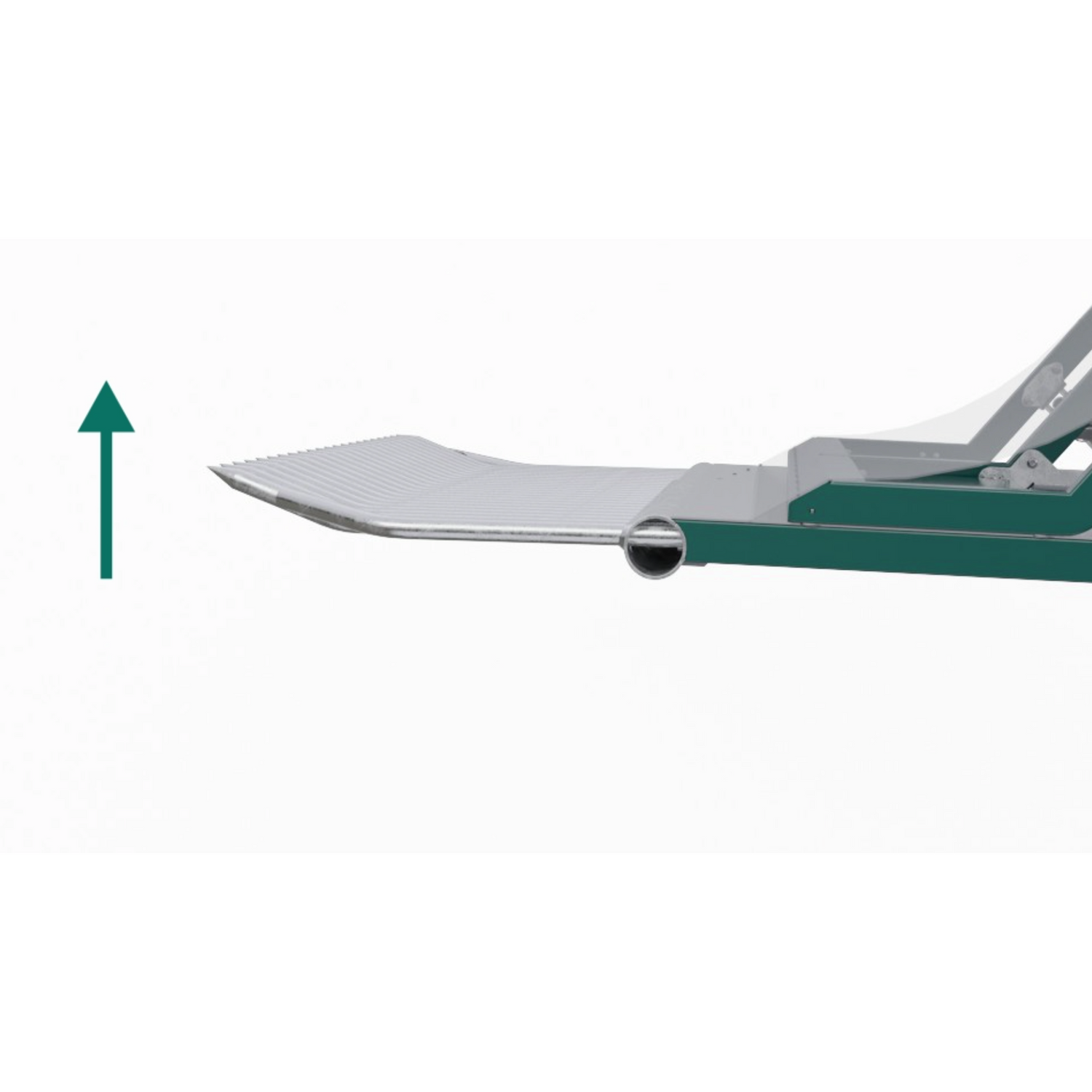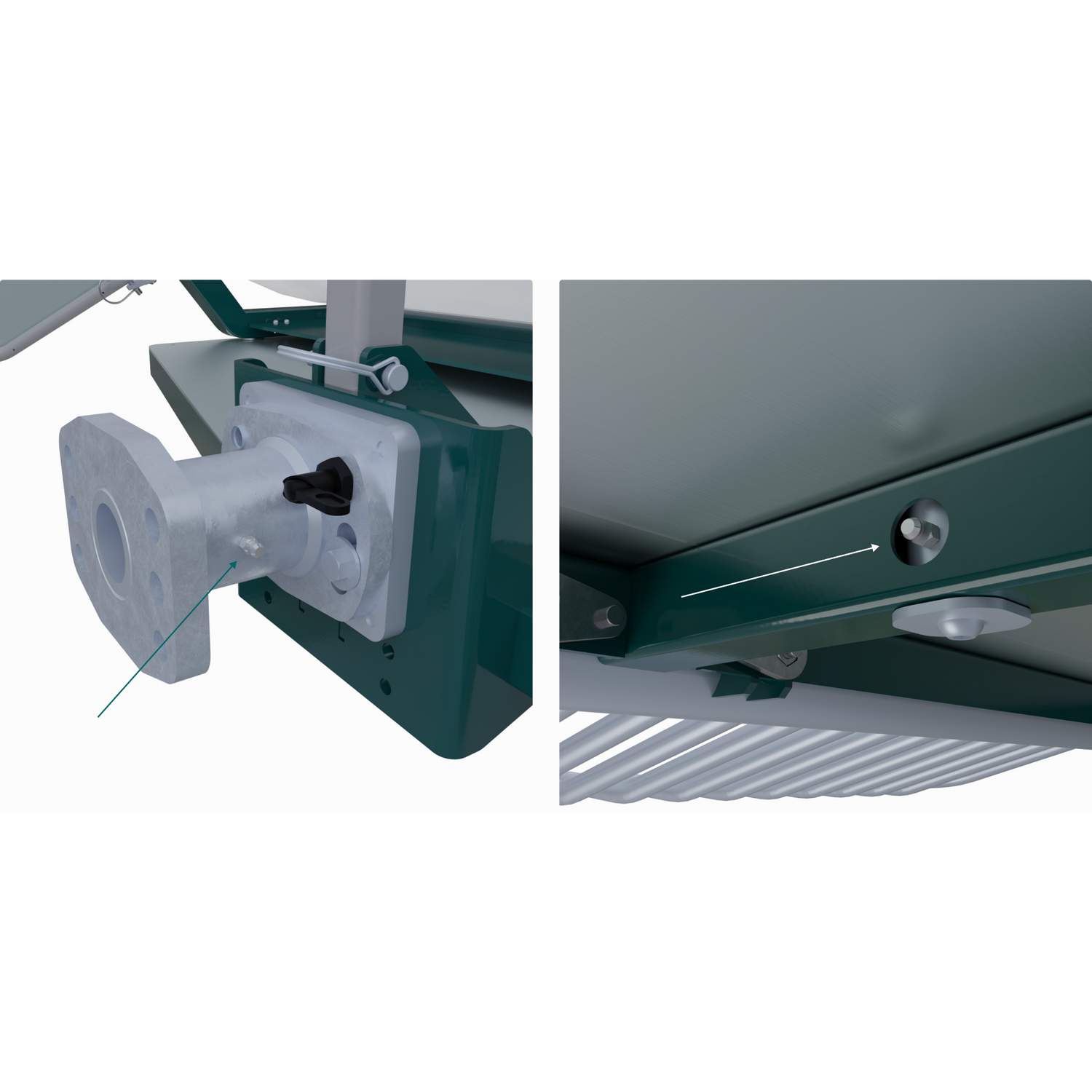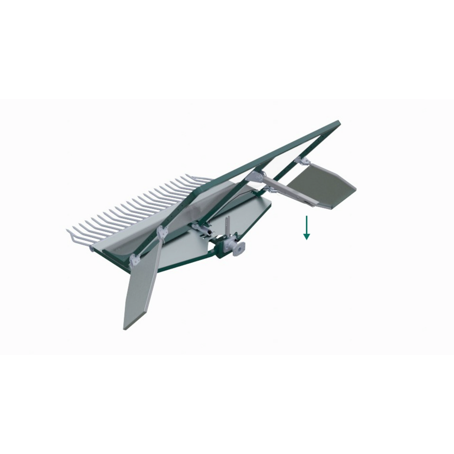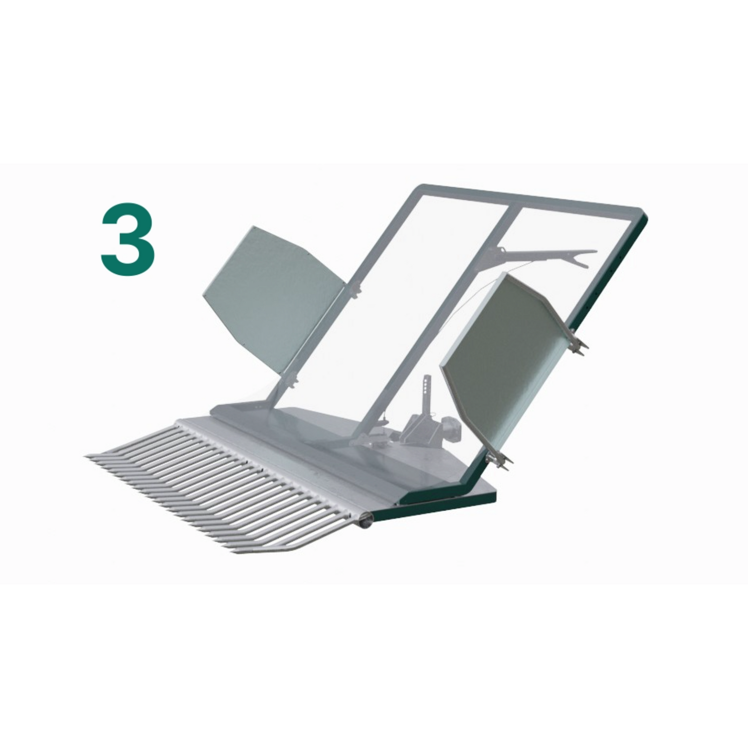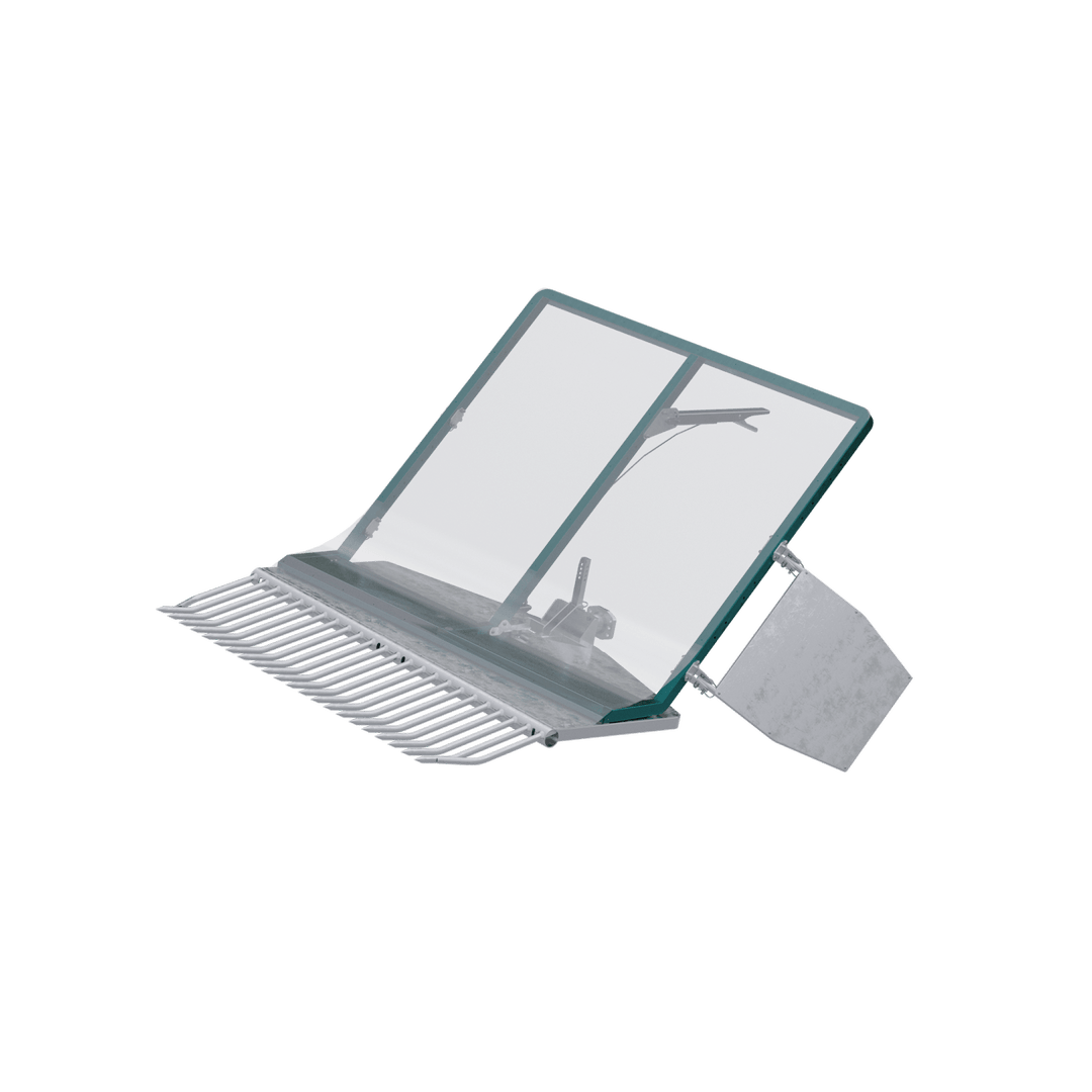 Zgrabljalniku omogoča, da stoji sam v poziciji za enostavni priklop na sprednji del kosilnice, namesto kosnega grebena.