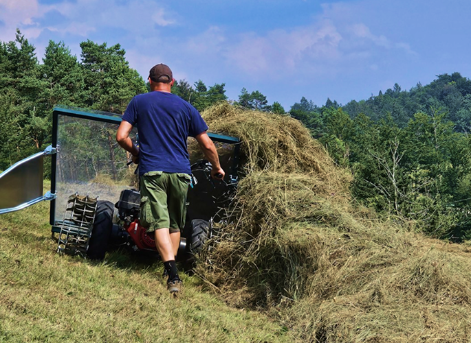 - Pozicija grabljenja krme - da se seno ne zatika v kolesa stroja.