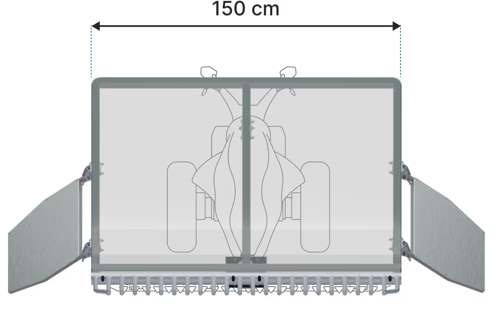 - Pozicija za potiskanje / transport krme - zavesci sta obrnjeni naprej, da se seno ustavi na zgrabljalniku